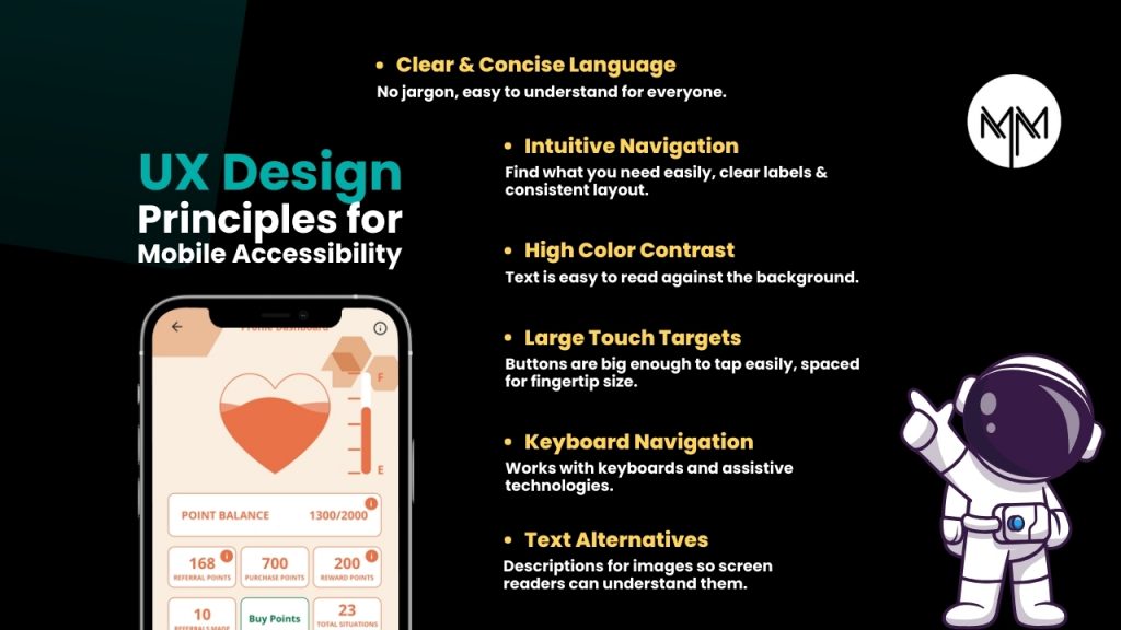 By prioritizing accessibility in UX design, we’re not just creating mobile apps but creating inclusive experiences.  This benefits users, strengthens your brand, and reflects a commitment to responsible design.